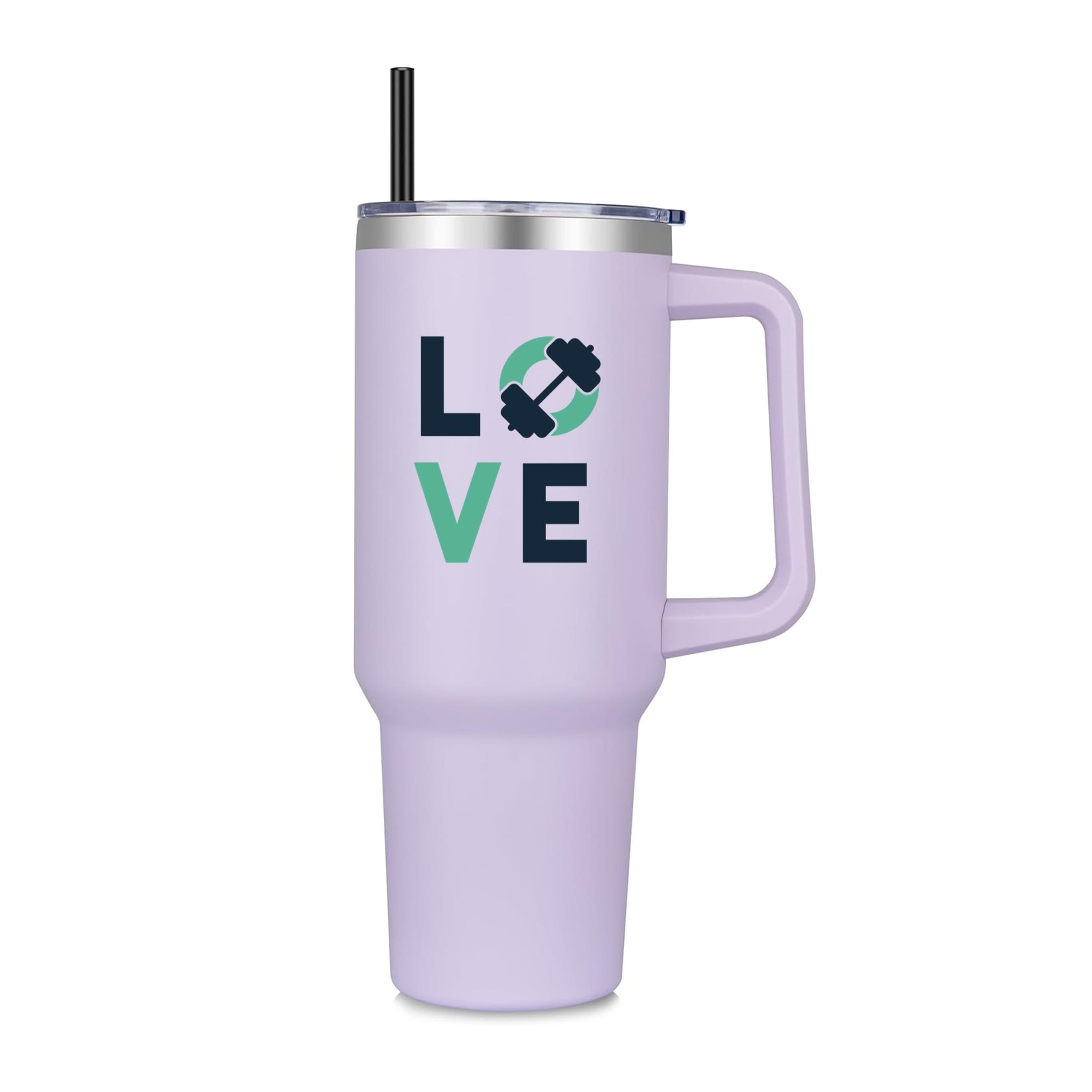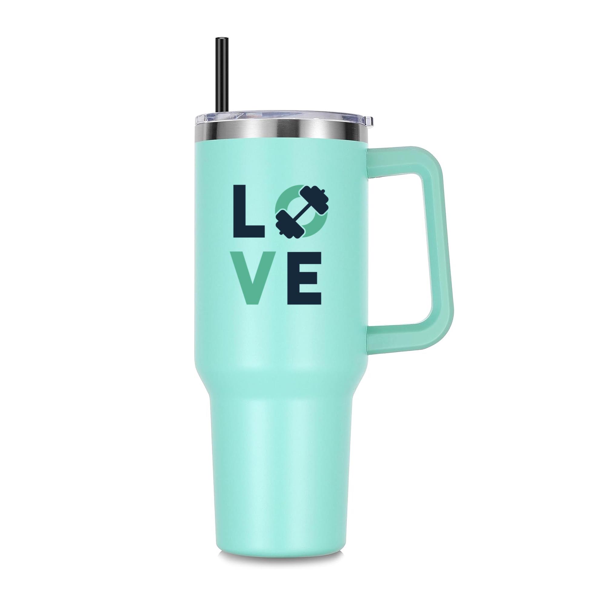 Love Gym Badge 40oz Stainless Steel Tumbler 40oz Stainless Steel Tumbler with Handle and Straw – Double-Wall Vacuum Insulated Travel Mug with Lid