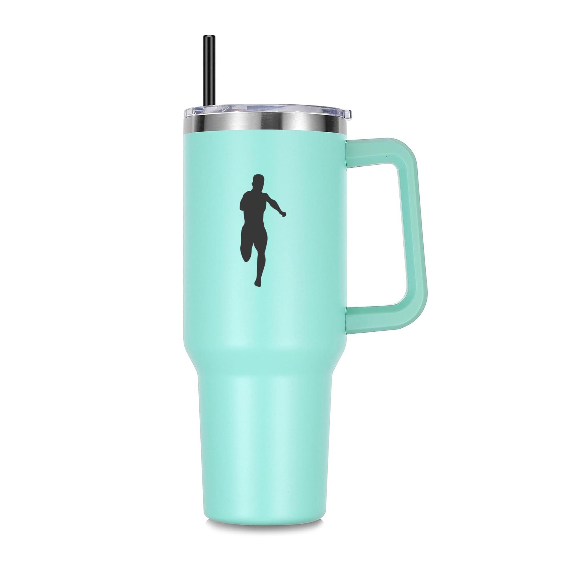 Male Athlete Running Silhouette 40oz Stainless Steel Tumbler 40oz Stainless Steel Tumbler with Handle and Straw – Double-Wall Vacuum Insulated Travel Mug with Lid