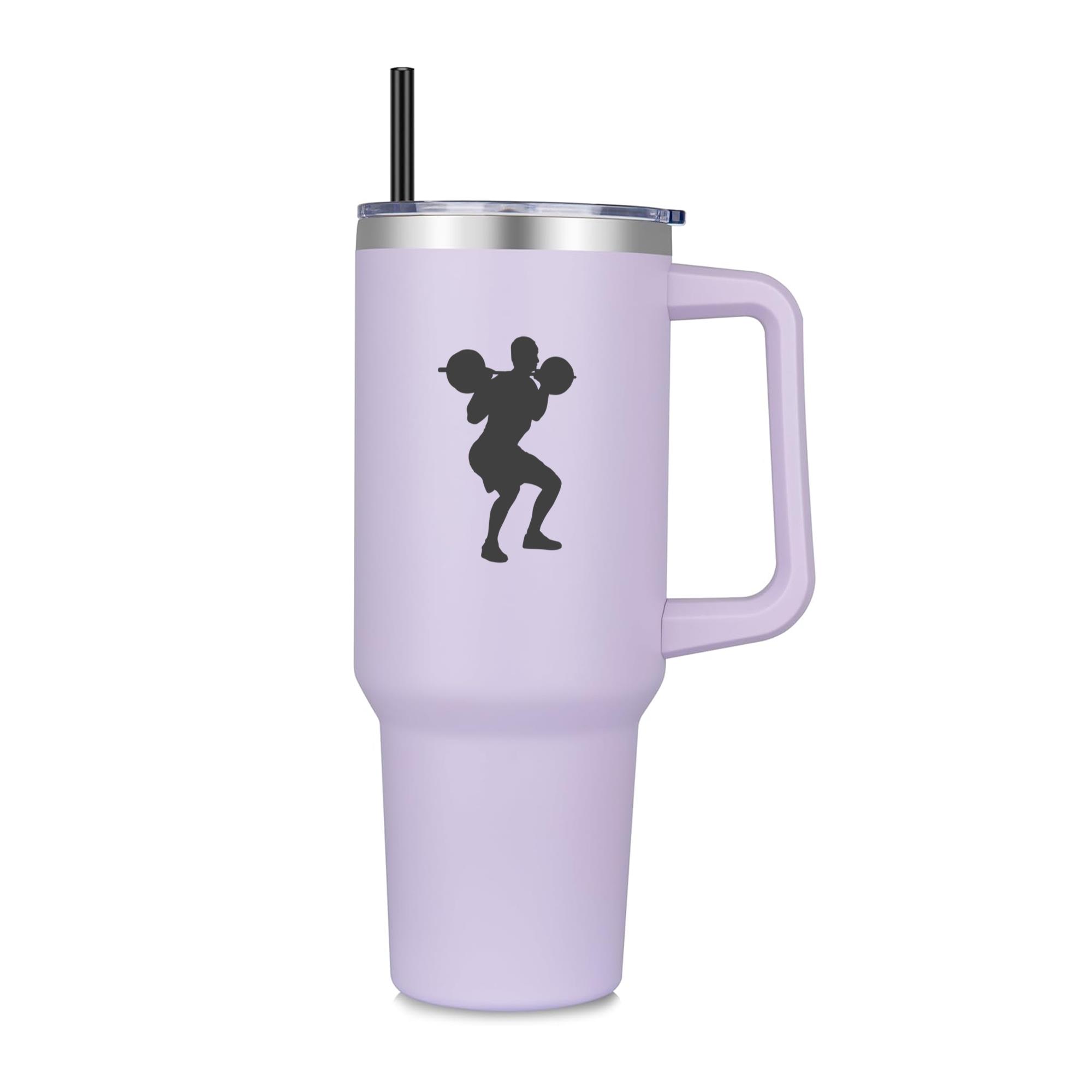 Man Barbell Squat Silhouette 40oz Stainless Steel Tumbler 40oz Stainless Steel Tumbler with Handle and Straw – Double-Wall Vacuum Insulated Travel Mug with Lid